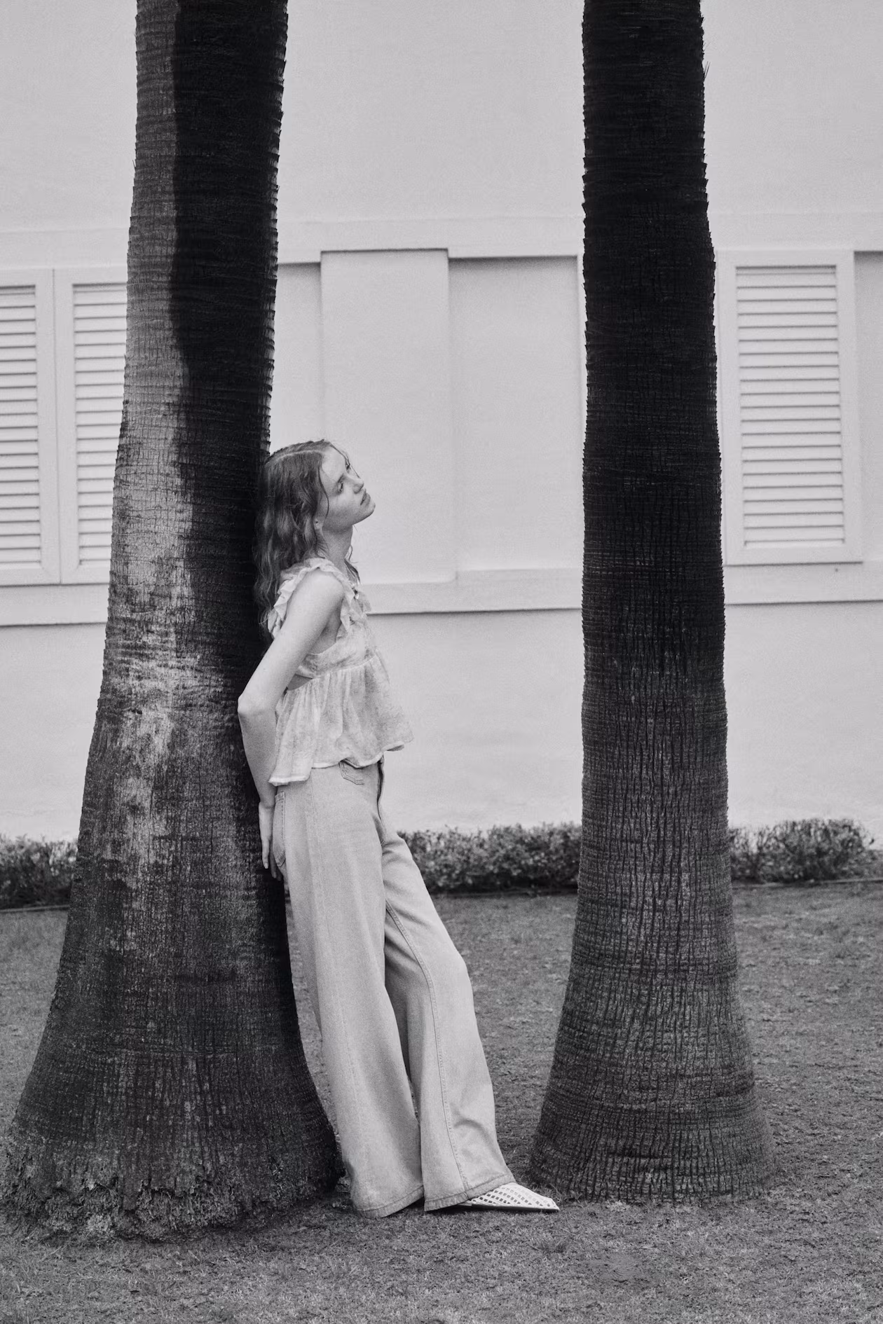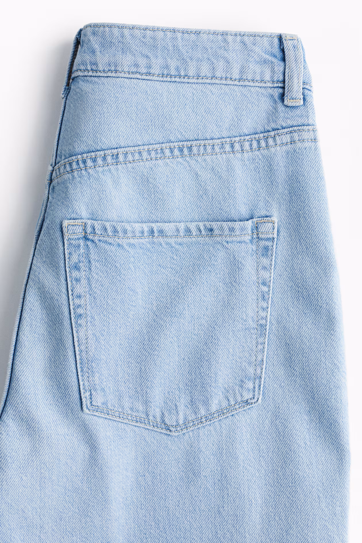 Jeans in rigid cotton denim that feels firm at first, softening and relaxing with wear. Regular fit from waist to hip and wide cut from thigh to hem. Extra-high waist, zip fly with button, front pockets with flap and snap fastener, and open back pockets. Wide, longer-length legs, designed to fall over foot with a stacking effect. Inspired by the 70s, designed for today.
