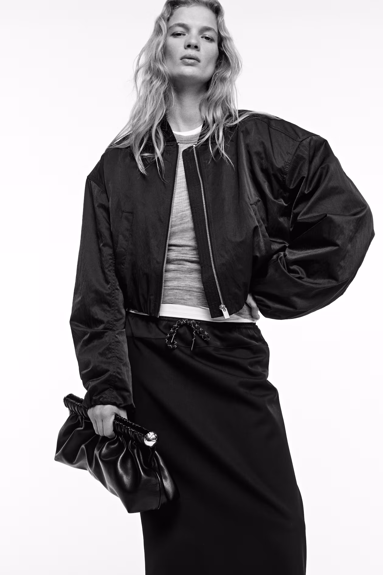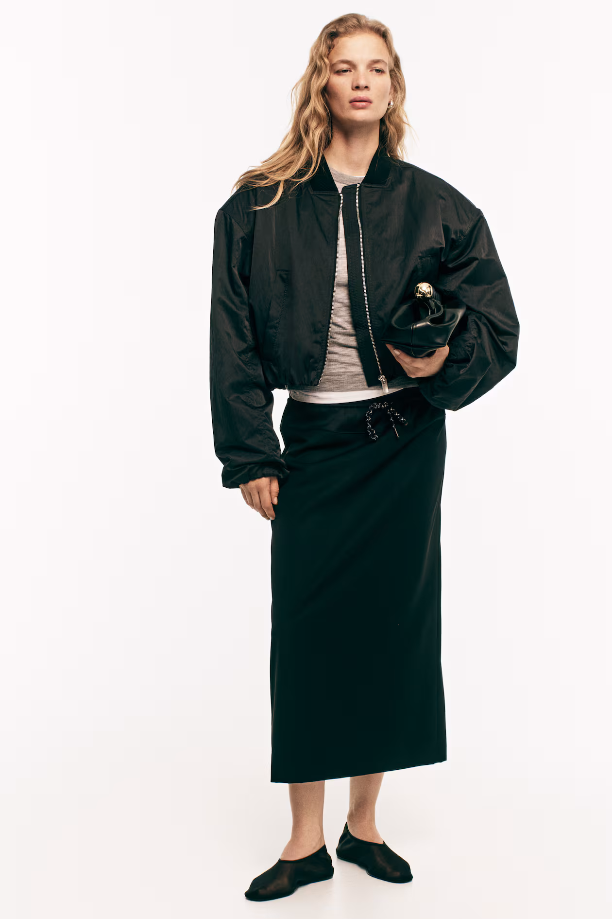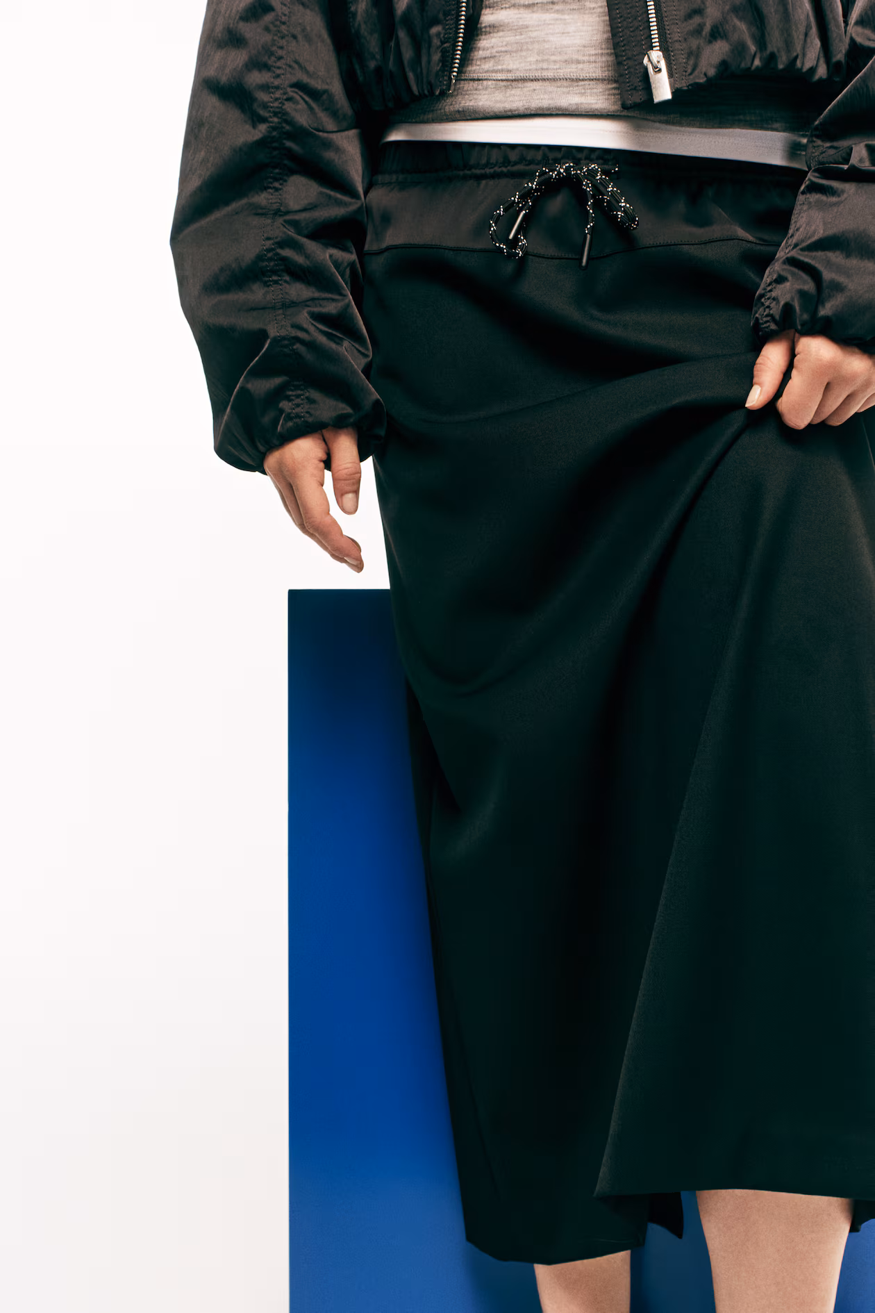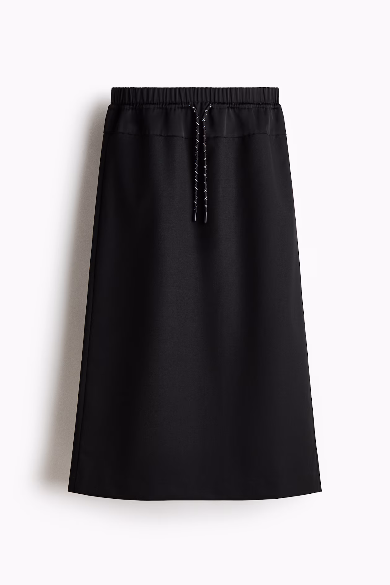 Ankle-length skirt in wool-blend twill. Accent-weave waistband with a drawstring and covered elastic. Slit at back of hem. Unlined.