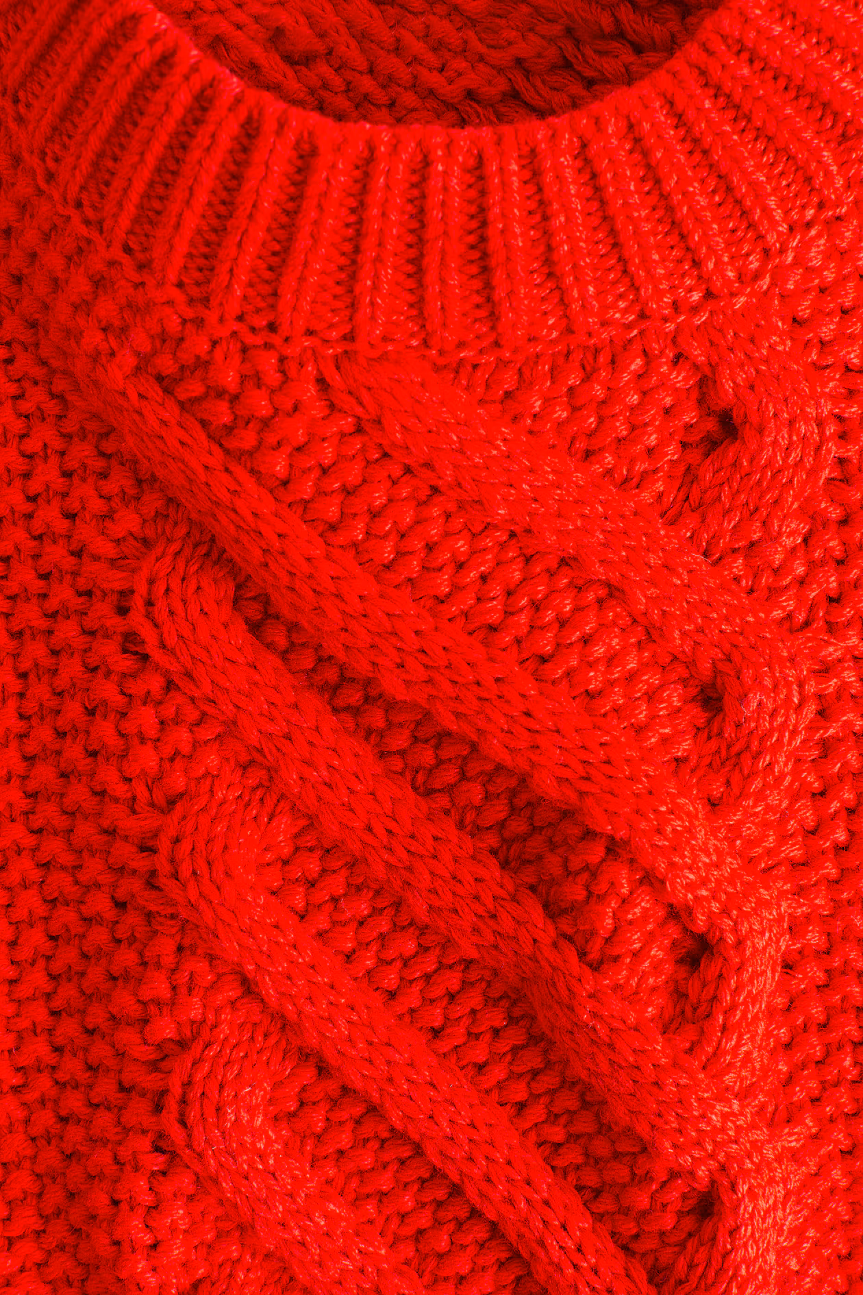Loose-fit sweater in a cable-knit wool blend. Round neckline, long sleeves, and ribbing at neckline, cuffs, and hem.