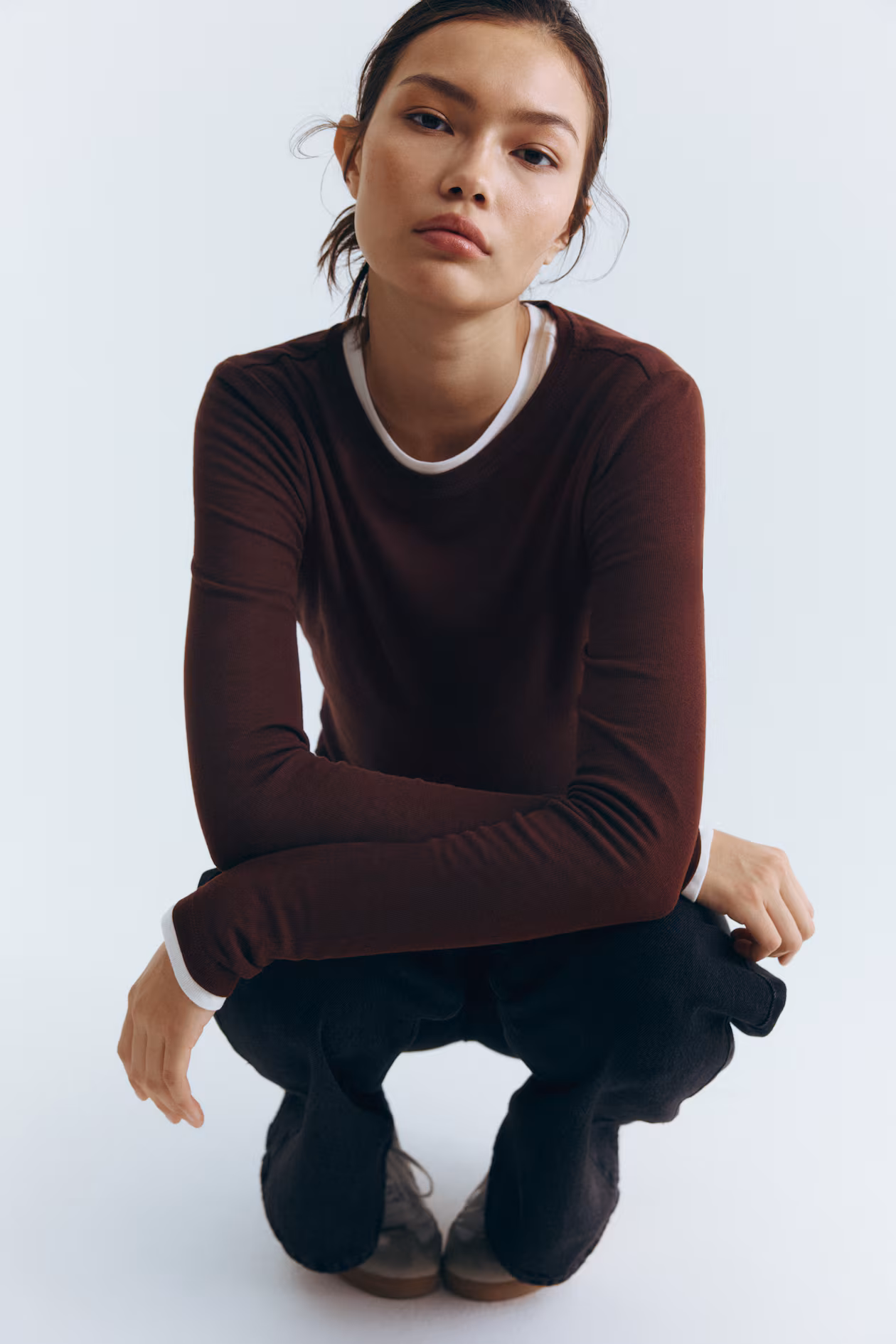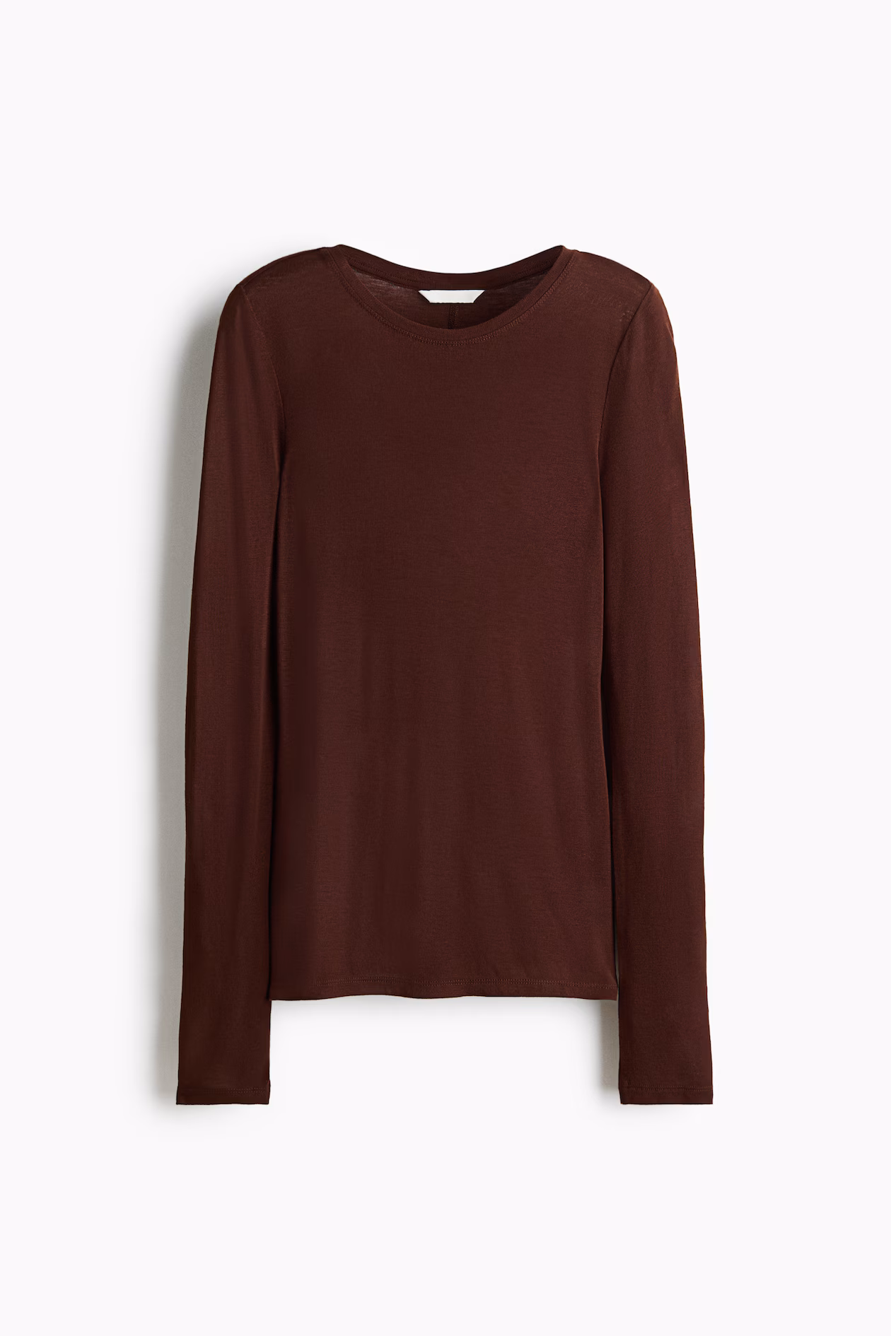 Fitted top in a sheer, rib-knit wool and viscose blend. Round neckline and long sleeves.